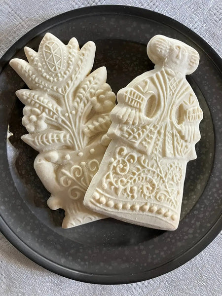 Description: The Christopher Ludwick cookie board is an 18th century, two sided carved gingerbread mold once used by Christopher Ludwick, Superintendent of Bakers under General George Washington during the Revolutionary War. The original mold -- which resides in the Museum of the American Revolution -- features two designs: an intricate potted flower on one side and a well dressed lady on the other. In partnership with the museum, House on the Hill is proud to offer you a faithful reproduction of Ludwick's mold. A printed gingerbread recipe and history card are included with your purchase. This mold also makes beautiful springerle!