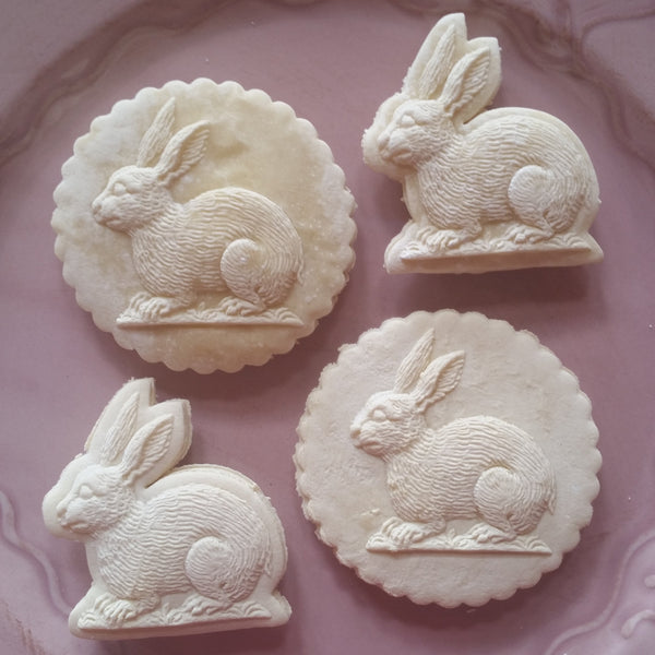 Description: Our sweet hare has wonderfully detailed fur. Perfect for Easter, spring, summer, baby birthdays, gender reveal parties, and baby showers. A faithful reproduction of an antique bunny mold. We also offer a cookie cutter options for this mold (see below).