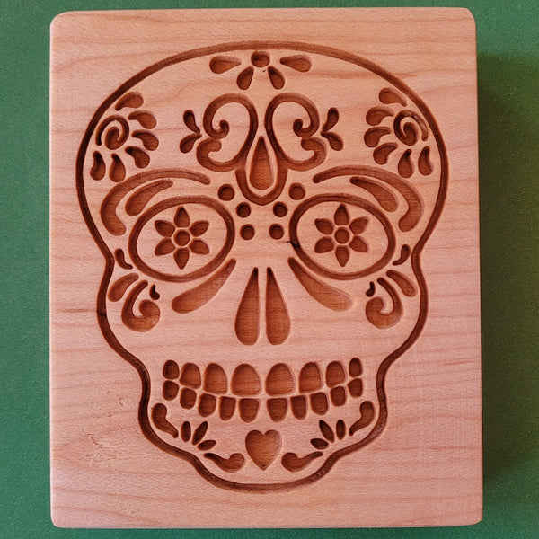 Description: To remember those who have passed before us and welcome their annual return, celebrate Day of the Dead (Dia de los Muertos) with our Sugar Skull mold. This design features a traditional sugar skull adorned with flowers, hearts, and scrolls. We also carry an optional matching cookie cutter for this mold.